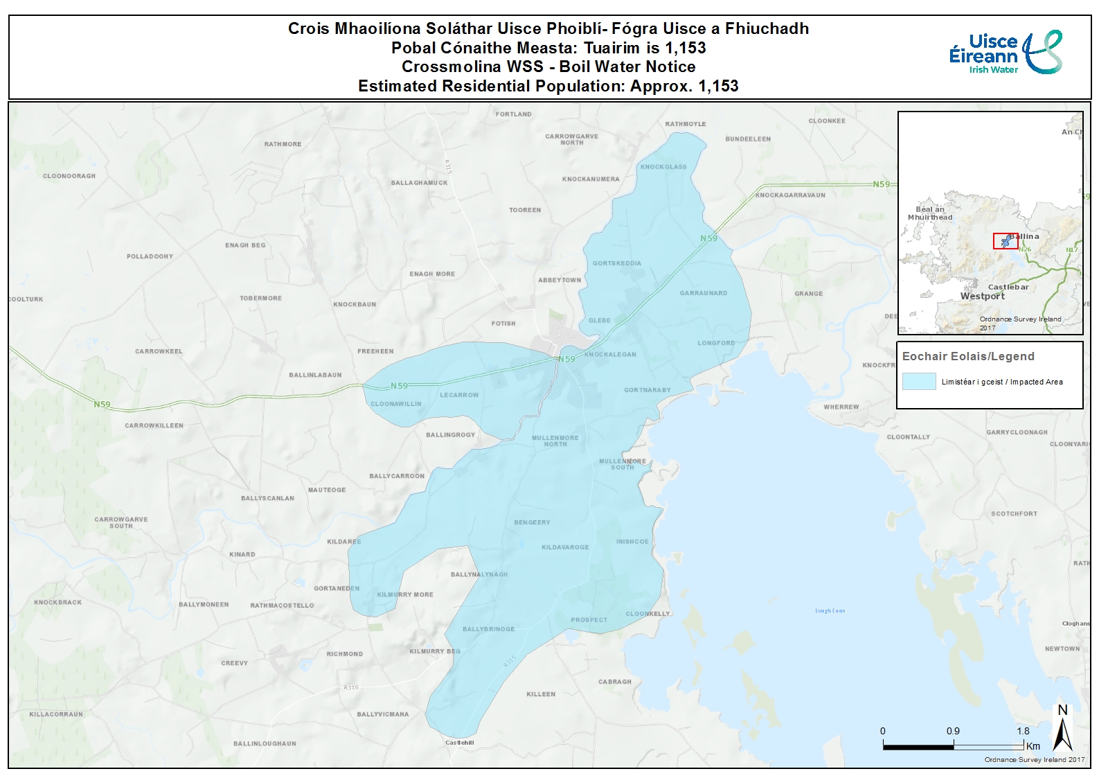 Following consultation with the Health Service Executive (HSE), Uisce Éireann has issued a Boil Water Notice to protect the health of approximately 1,153 consumers supplied by Crossmolina Public Water Supply. The notice has been issued due to an operational issue which has impacted the disinfection process at the plant.
