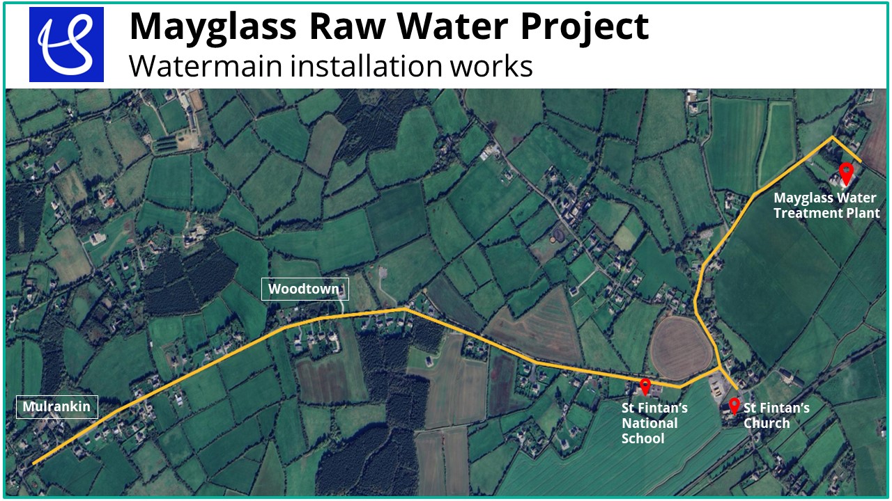 Uisce Éireann will commence works on March 19 to install over 3.5km of watermains in Mayglass, South Wexford. The new water mains will alleviate current supply challenges in the area. The project will increase the water supply capacity, reduce the risk of interruption to water supply and support sustainable growth and development.