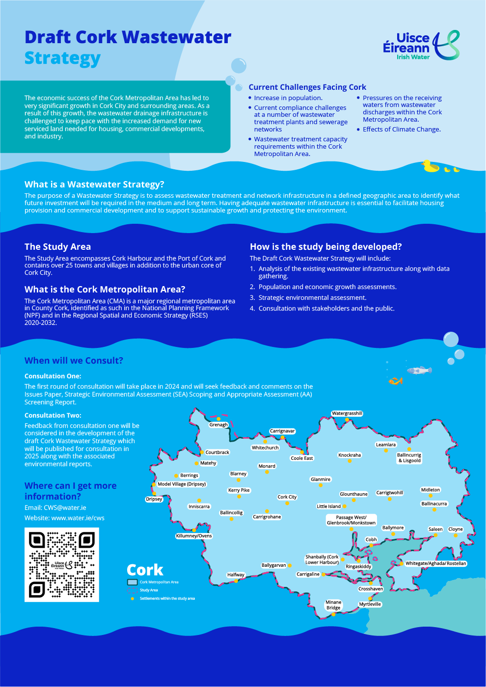 The Draft Cork Wastewater Strategy aims to deliver a sustainable drainage strategy that will protect public health, safeguard our environment and facilitate growth to 2080.